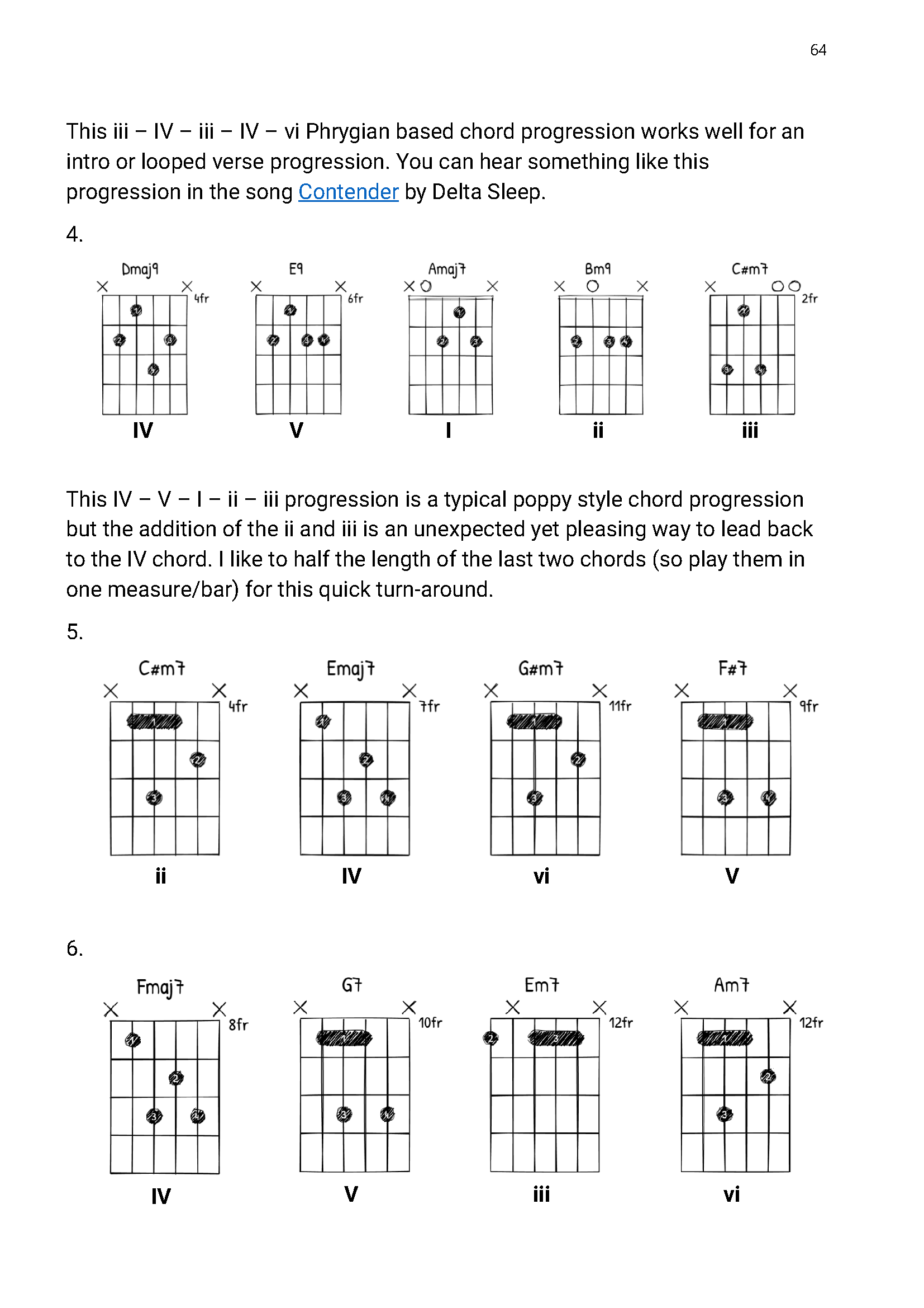 - 100+ essential chords and 30 must-know progressions used in real math rock & Midwest emo songs, so you can stop recycling the same old shapes and start writing progressions that actually sound like the bands you love. (Pages 48–80)
