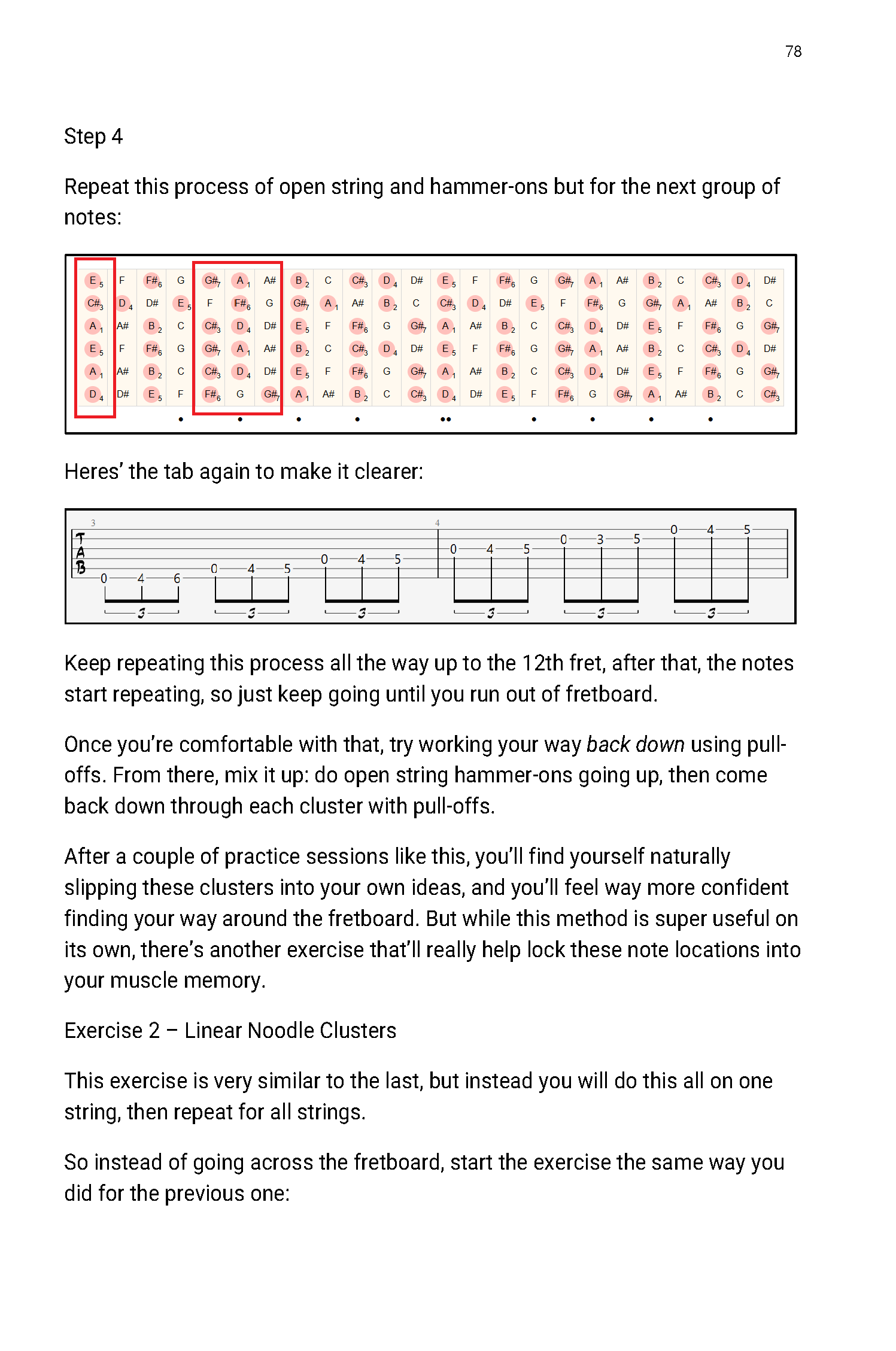 - 40+ focused math rock guitar exercises so you can quickly master the core techniques that define the style—without wasting hours hunting for random tabs and lessons online. (Pages 7–38)